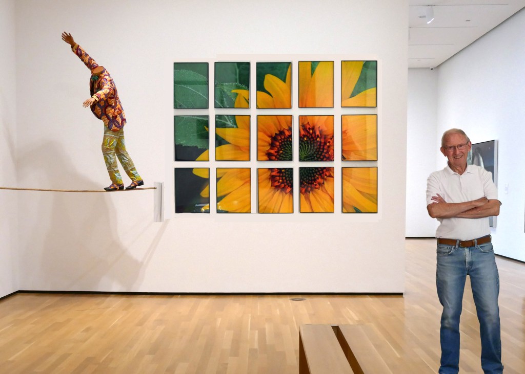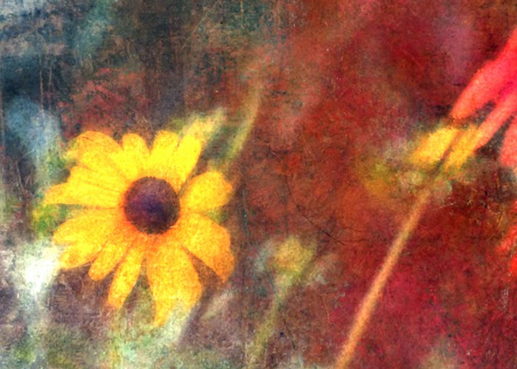 Equally inspired by the sunflower, I took a photograph and cropped it into twelve 8×10 images then mounted them in cheap plastic frames and hung them on a wall. Voila!