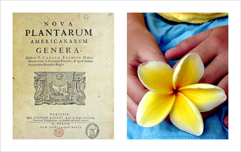 Granddaughter Brynna, holds a yellow Frangipani in Barbados. Native to the Caribbean, the genus Plumeria is named in honor of 17th-century French botanist and Catholic monk Charles Plumier (1646 – 1704) who traveled to the New World documenting plant and animal species. Perhaps he also smelled its sweet perfume as he held a similar blossom in this region three-hundred years ago.