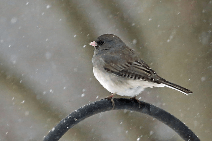 And suddenly I notice a bird, a junco, perched on the feeder pole. Life goes on.