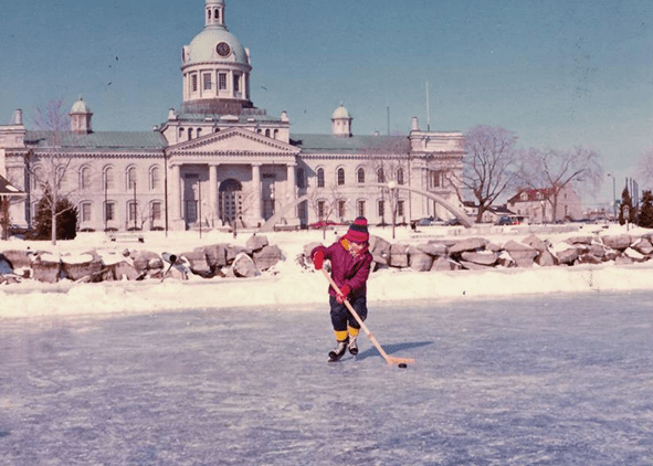 It didn’t take long for the children to learn to skate. Here’s our son, Adrian, on the frozen lake in front of Kingston’s city hall.
