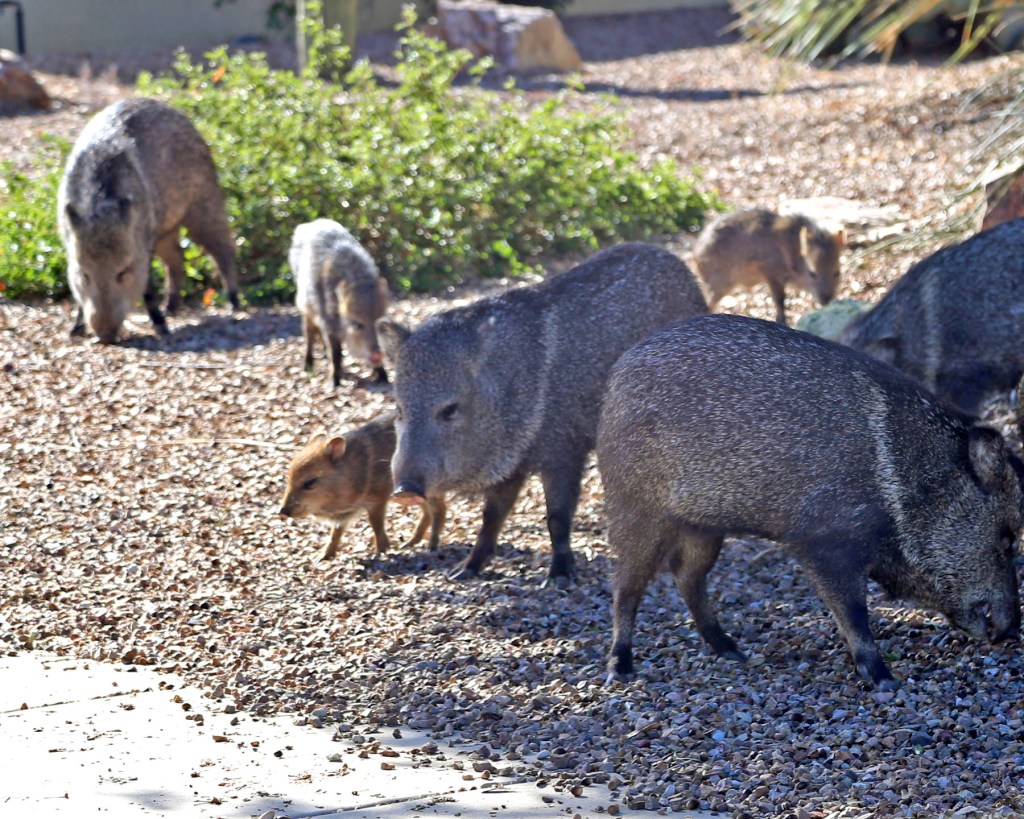 To end on a more palatable note, here is part of a multi-generational herd of Javelinas on a neighbor’s property