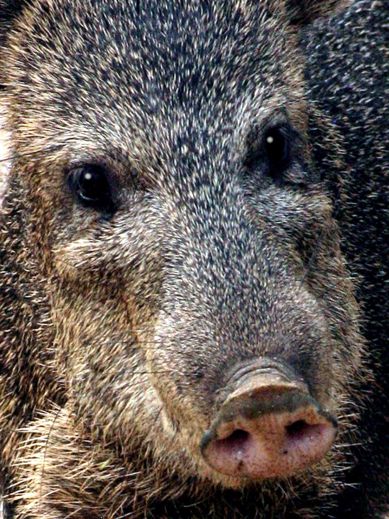 Newborns up to three months old are red-brown or tan and are called “reds”, live an average of 7.5 years. All Javelinas have very poor eyesight and may appear to be charging when actually trying to escape. They have a keen sense of smell that identifies people and pets. It’s best to keep a safe distance.