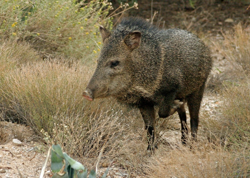 Javelinas were frequent visitors to our home in Southwest Arizona. Some people think them as wild pigs, but they are actually members of the peccary family, a group of hoofed mammals originating from South America. Javelina form herds of up to 20 animals and rely on each other to defend territory. They use dry riverbeds and areas with dense vegetation as travel corridors.