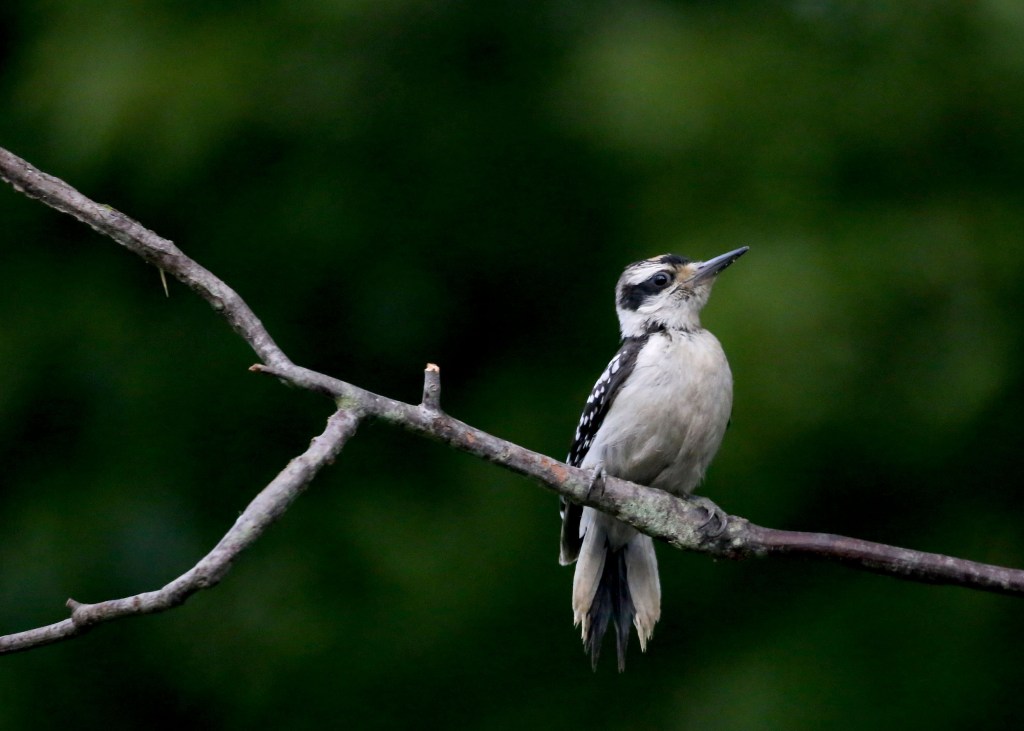 The second image is that of the larger Hairy Woodpecker that gets its name from the long, thread-like white feathers that run down the middle of its black back. Like the smaller Downy it is at home at the edge of forests such as the one behind our home.