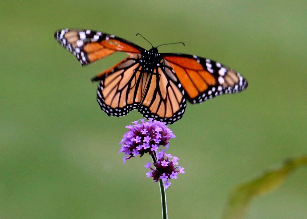Here is the first Monarch to visit our garden this year. It was a welcome surprise because the numbers of Monarch butterflies are dwindling. They have started migrating from their breeding grounds in Canada on a long journey through the US to Mexico, often covering fifty to a hundred miles per day, reaching their destination near early November.