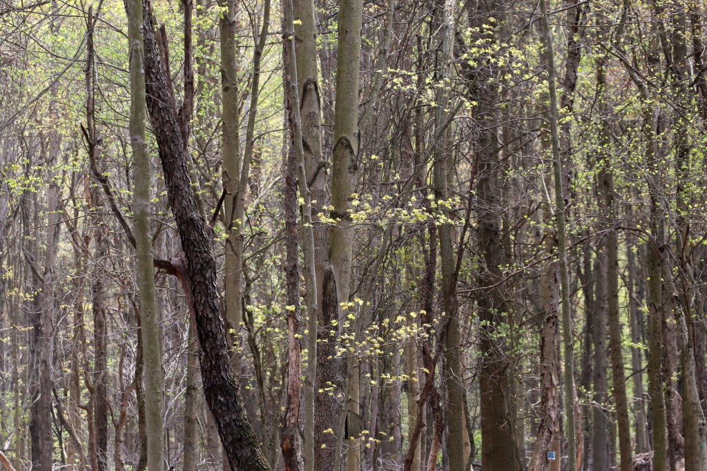 And beyond the lake, leaves begin to bud in the forest