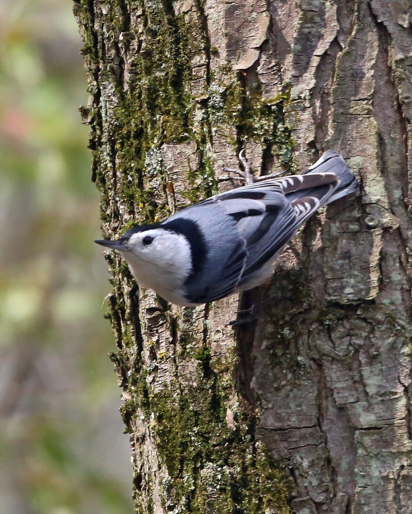 In the forest I notice the quick movement of a bird as it flits from one tree trunk to another. For a moment it pauses nearby. A White-breasted Nuthatch.